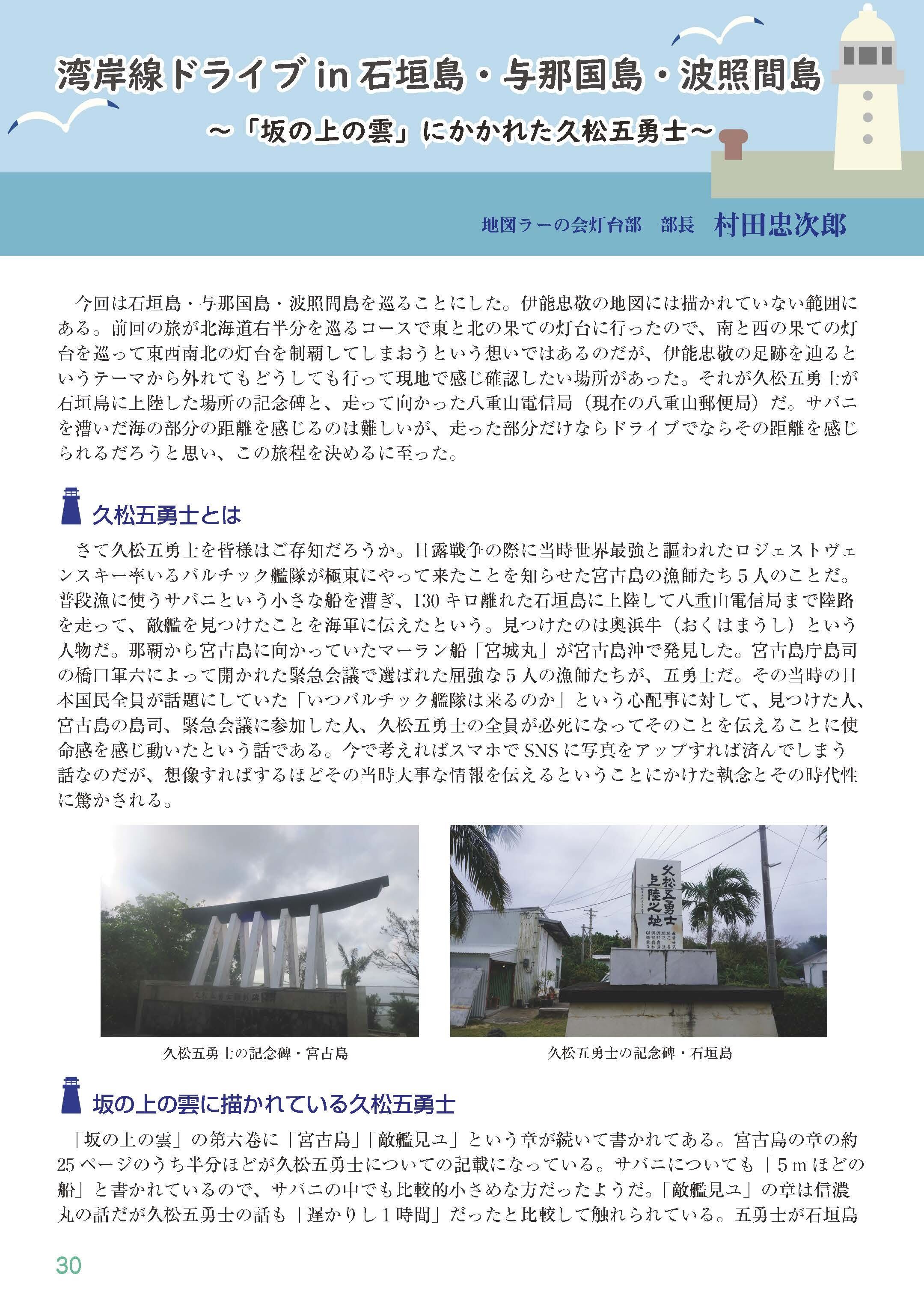 湾岸線ドライブin石垣島・与那国島・波照間島 ~「坂の上の雲」にかかれた久松五勇士~/地図ラーの会灯台部部長 村田 忠次郎