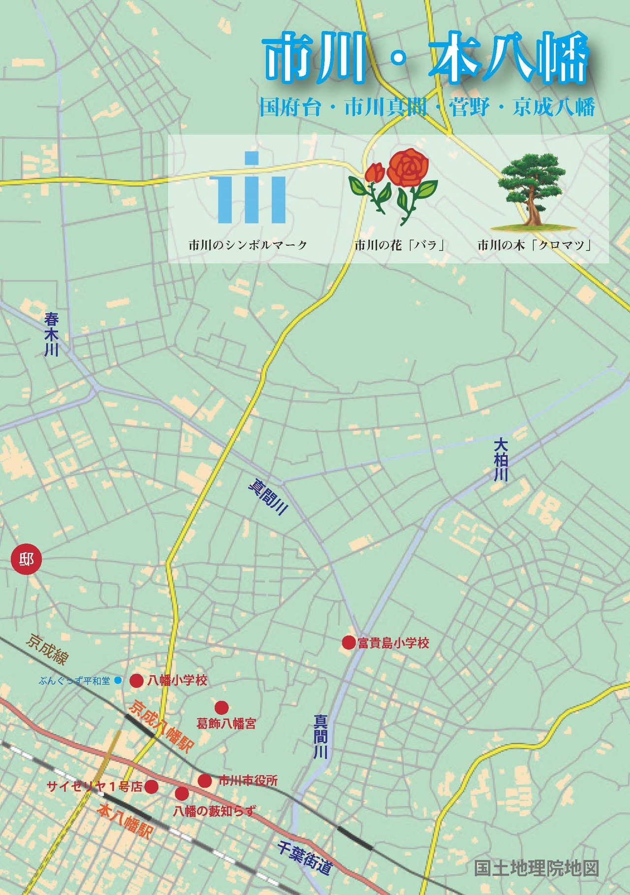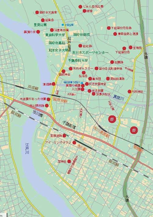 京成線国府台駅を起点に下総国の国府や国府台合戦の遺構、市川真間駅から真間の入江の痕跡や弘法寺から国分寺、本八幡駅から葛飾八幡宮や商店街など、見どころいっぱいの市川を楽しくガイドしています。