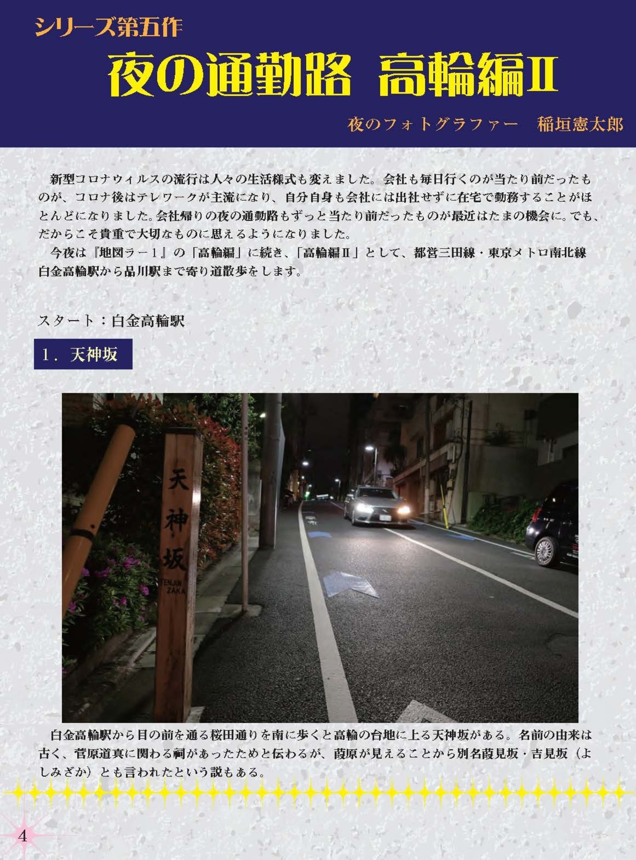 巻頭グラビア「夜の通勤路高輪編Ⅱ」稲垣憲太郎氏(千葉スリバチ学会会長)