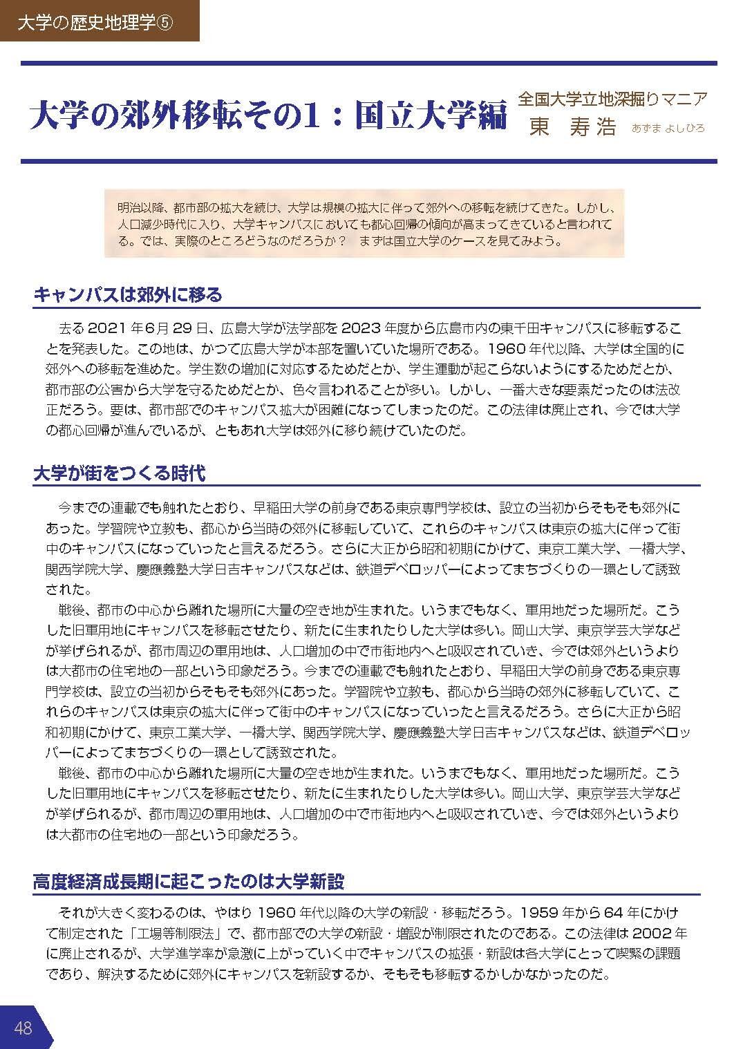「大学の歴史地理学⑤大学の郊外移転その1:国立大学編」東寿浩氏(全国大学立地深掘りマニア)